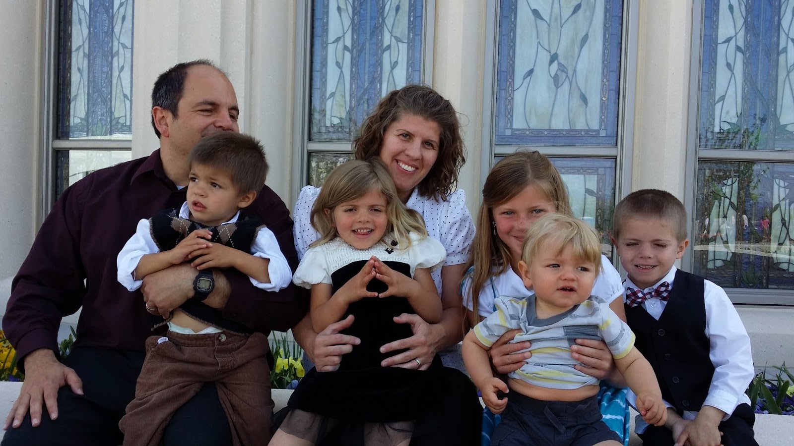 The only family photo we've had all summer. Actually this was spring at the Payson temple open house. Really beautiful temple by the way. Lots of stairs with no stroller. I am surprised I'm smiling with the big cramp in my upper back :)